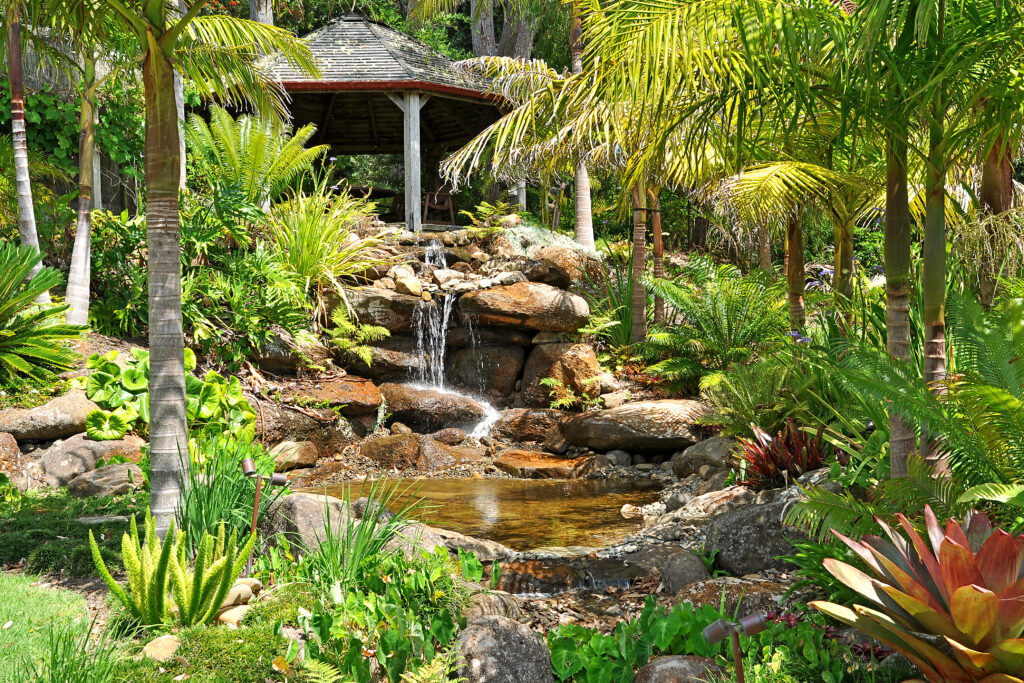Magnificent landscaped gardens and ancient native trees add to the serenity of your Sanctuary in the Cove holiday.